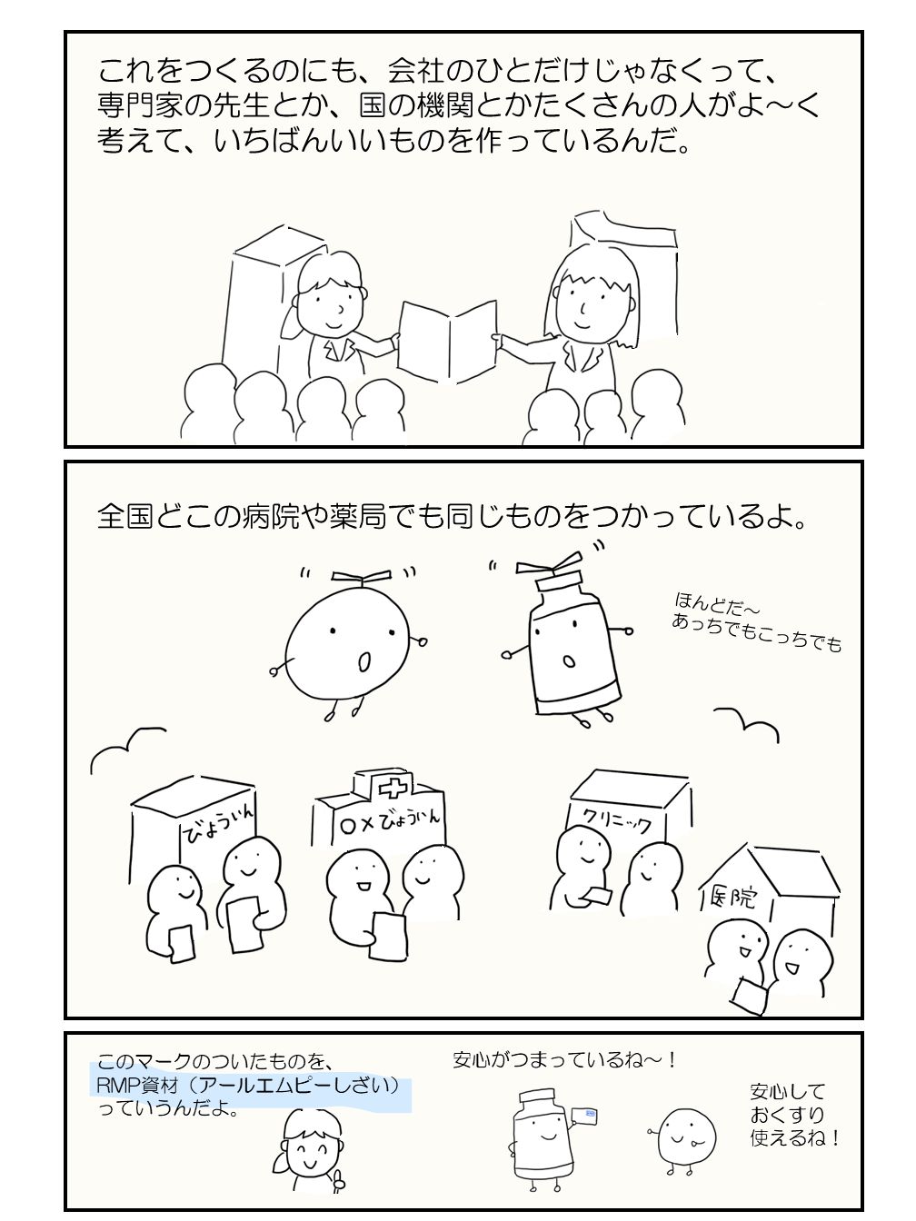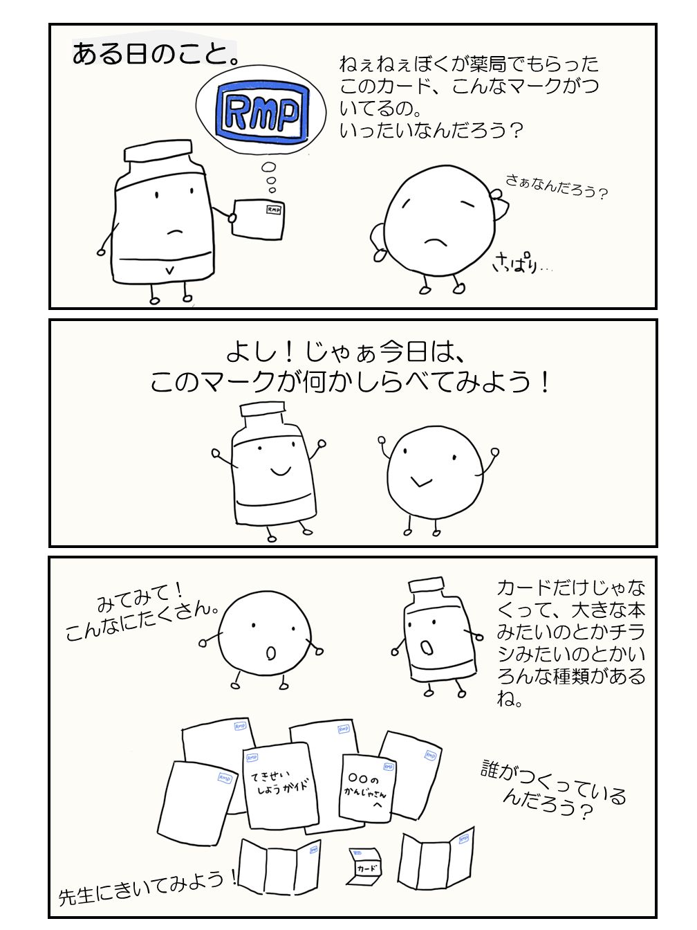 病院でもらったお薬の説明がかいてある紙に、とあるマークが。 いったいどんな意味なのかな?PくんとVくんが調べてみたよ。