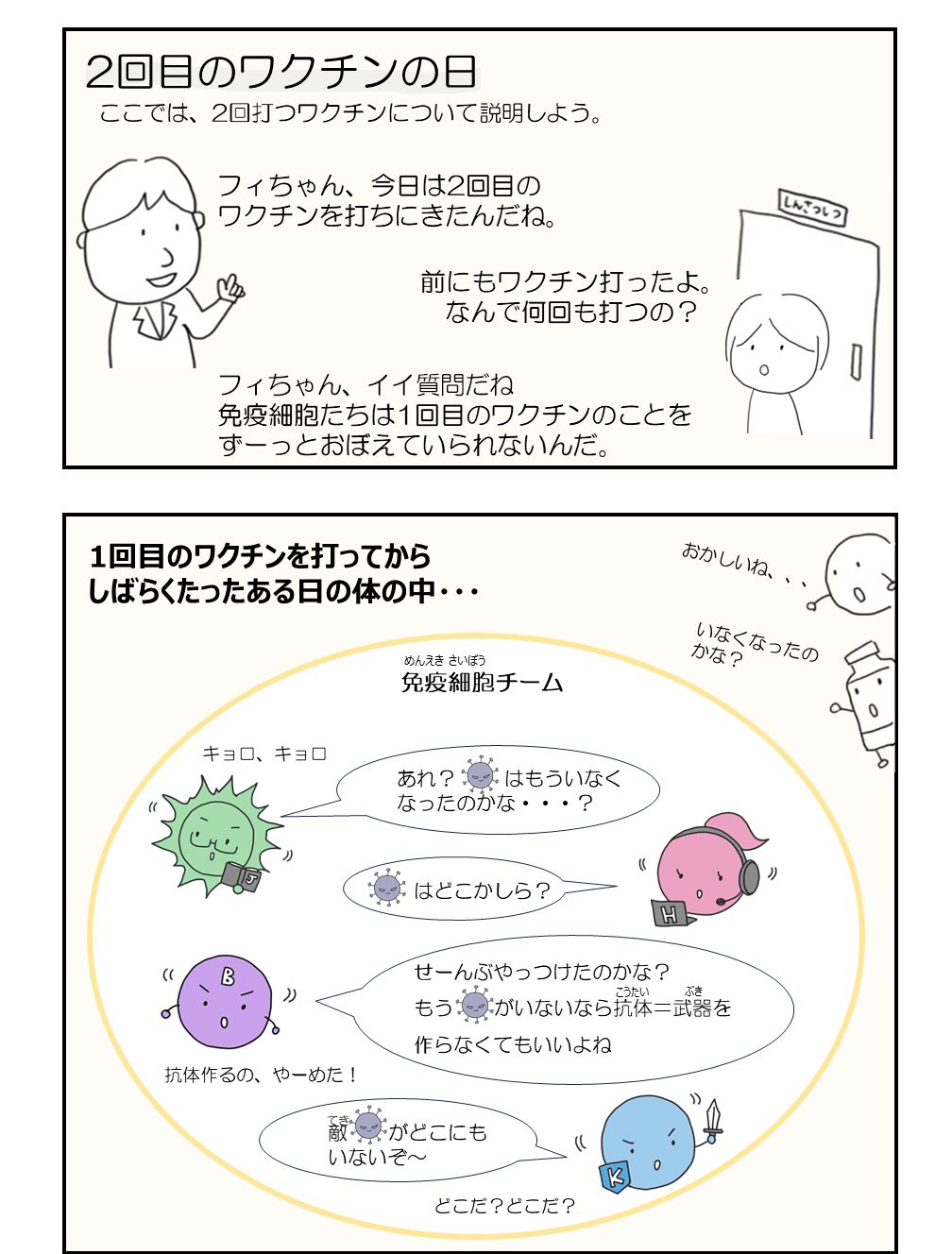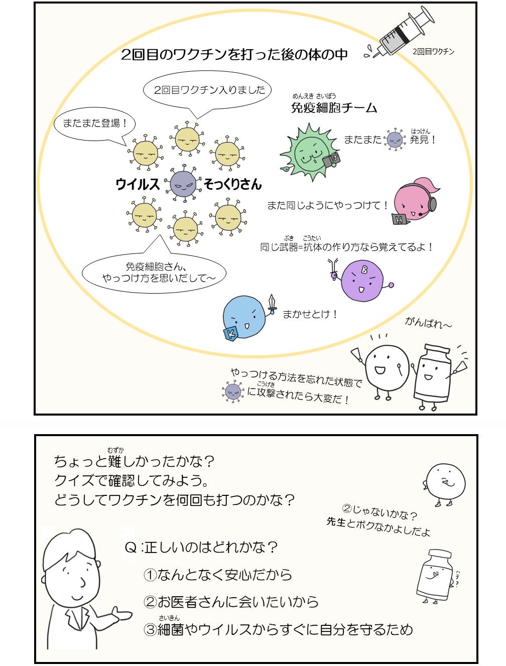 ワクチンには大切な役割があるんだよ。 PくんVくんと一緒に学んでみよう。
